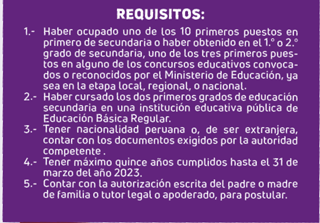 Cabe destacar que se consideran aptos para participar los estudiantes que hayan concluido el 2.° grado de secundaria con cinco parámetros. (ver cuadro)
