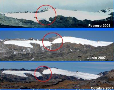 Sabandía. En menos de 20 años desaparecerán al menos nueve glaciares en el Perú de acuerdo al Instituto Nacional de Investigación en Glaciares y Ecosistemas de Montaña (INAIGEM). En los últimos 50 años se perdió el 53.56 % (1 284.95 km2) de área glaciar, debido principalmente al aumento de la temperatura del planeta que aceleró el retroceso de los glaciares.