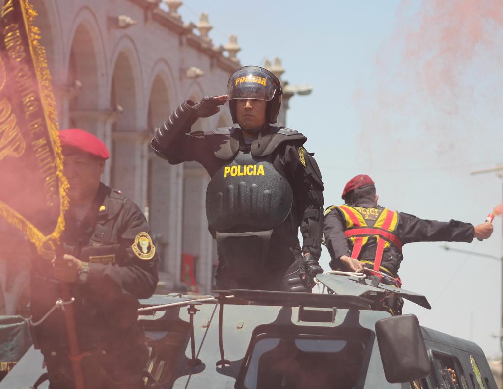 La plaza de Armas ayer se vistió con los colores de los oficiales y suboficiales de la Policía Nacional del Perú, pues este 6 de diciembre cumple 35 años de creación, así que decidieron desfilar primero para brindar homenaje a la Unidad de Servicios Especiales (USE) que hoy celebra 50 años de fundación. El personal desfiló con el perfil en alto representando a su unidad que diariamente está al servicio de la sociedad.