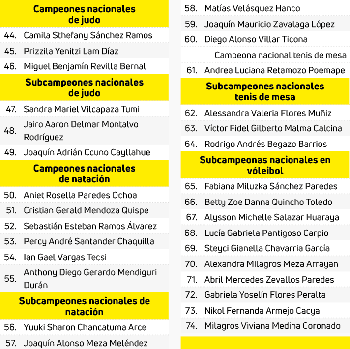 Serán distinguidos competidores escolares que destacaron en los Juegos Deportivos y Paradeportivos 2023 en la etapa Nacional del Deporte Escolar organizado por la Gerencia Regional de Educación y el Ministerio de Educación, así como a atletas de ligas deportivas de nuestra ciudad y cuyas relaciones desde hoy daremos a conocer.