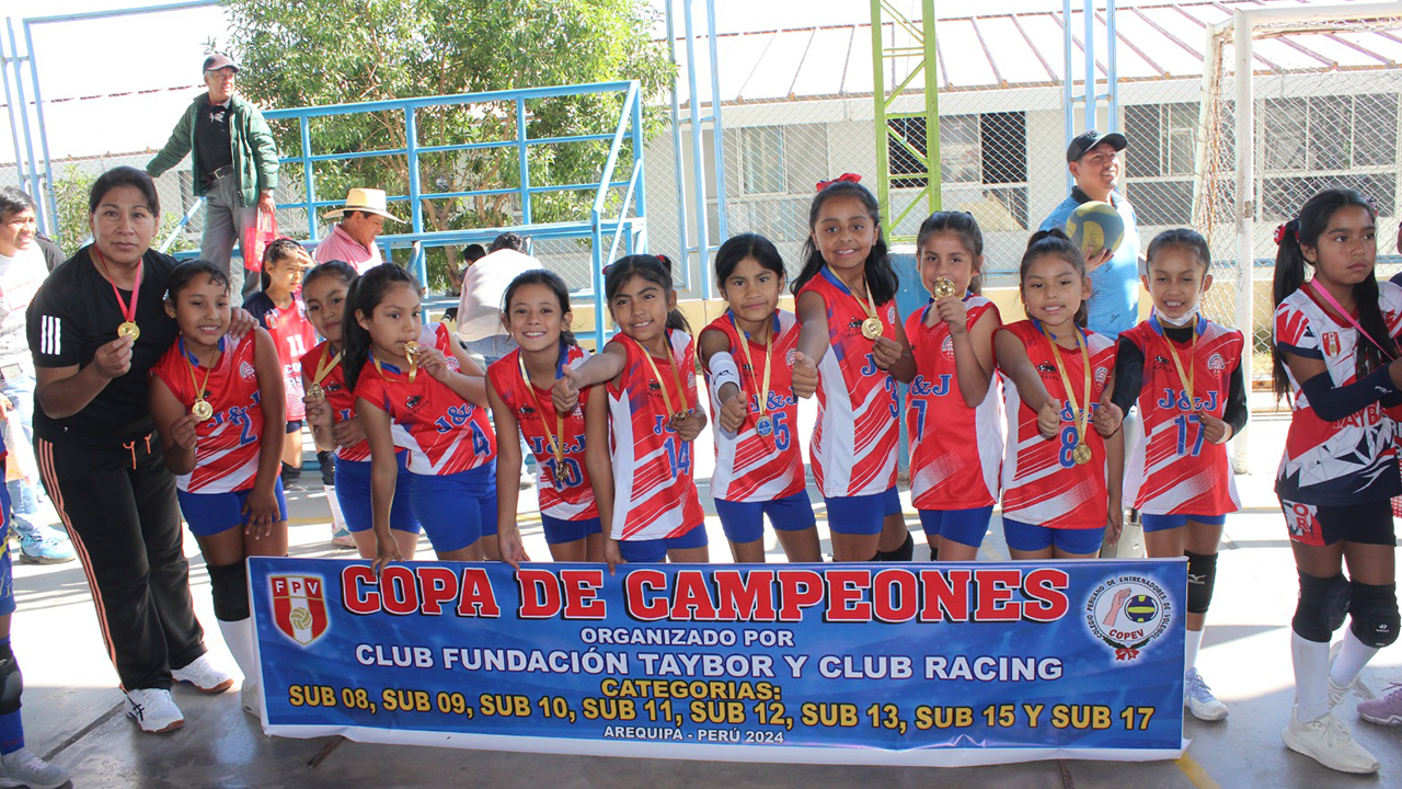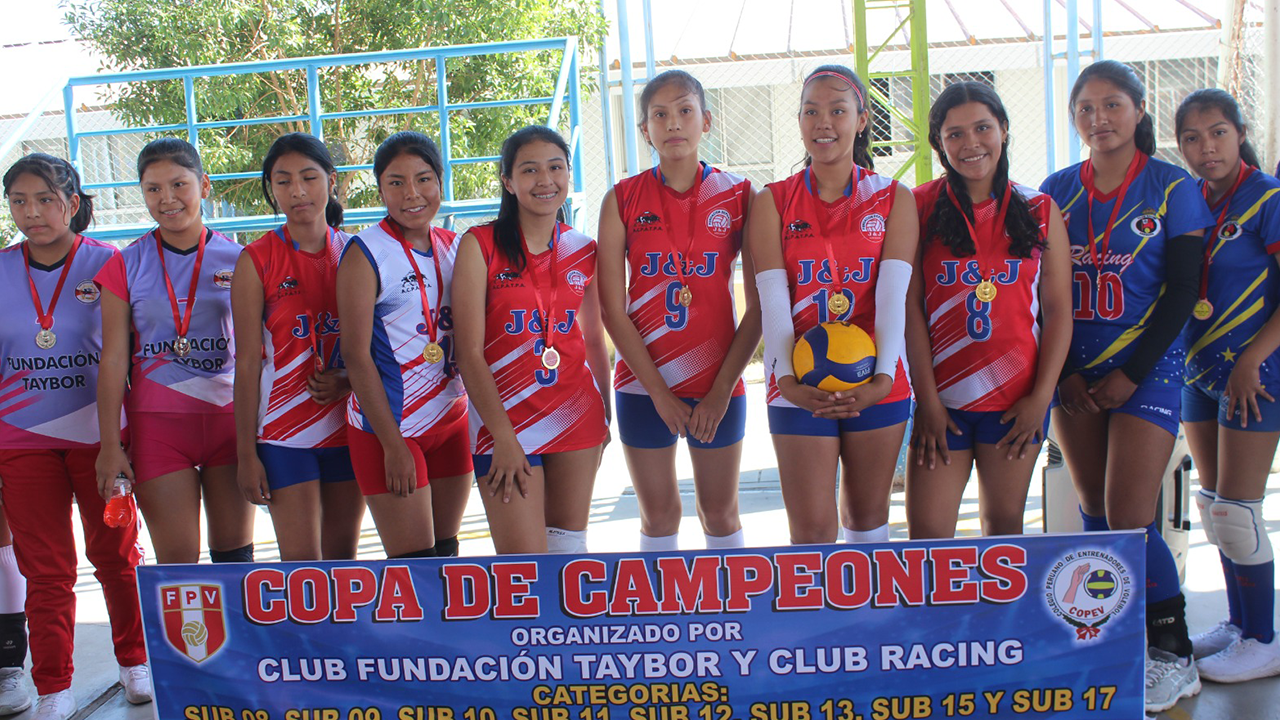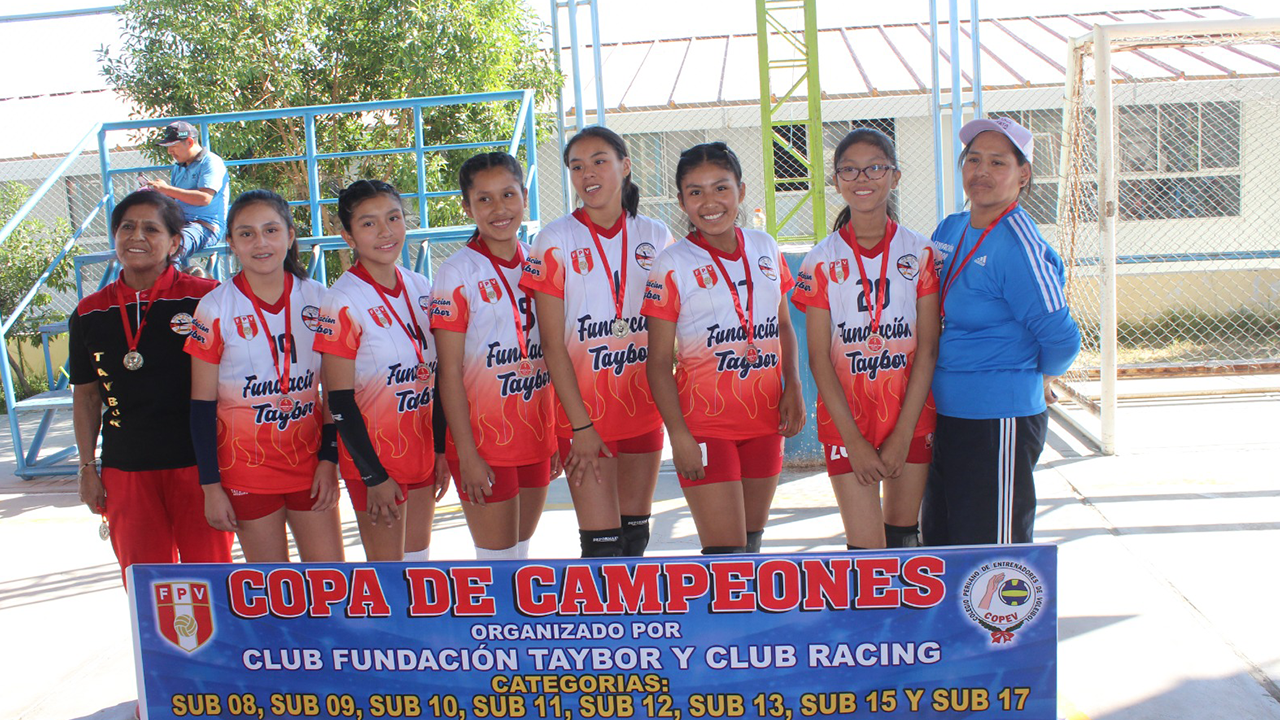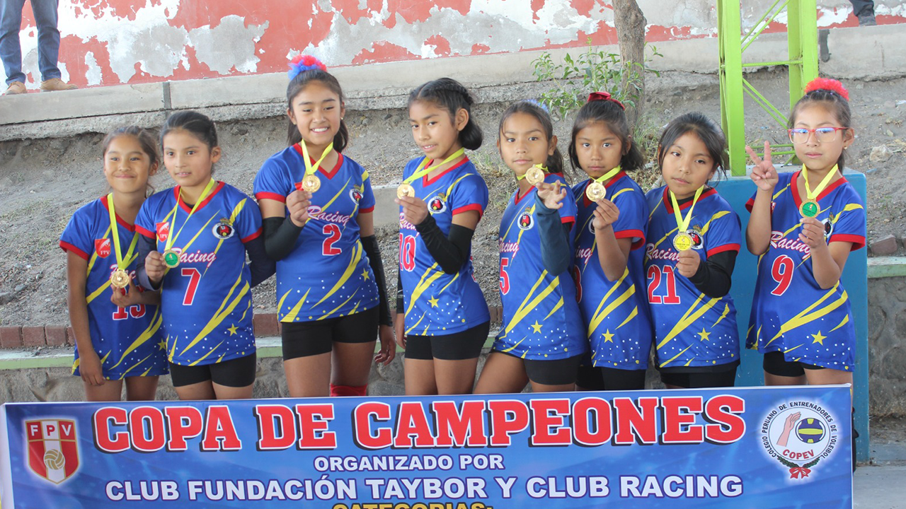 Decenas de niñas y adolescentes deslumbraron en la final de la Copa de Campeones, torneo de vóleibol menores que organizaron este último sábado los clubes Fundación Taybor y Racing en las instalaciones del Politécnico Rafael Loayza, en Mariano Melgar. Los partidos fueron vibrantes y palpitantes de principio a fin. Sólo los tres primeros lugares de las categorías Sub-8, Sub-9, Sub-10, Sub-11, Sub-12, Sub-13, Sub-15 y Sub-17 recibieron sus respectivas medallas.
