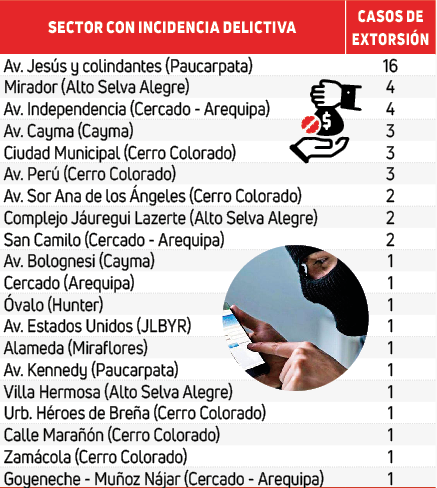 Explicó que en la encuesta regional aplicada por el Coresec, se identificó zonas de riesgo donde la PNP y el Ejecutivo debería priorizar mediante inteligencia policial y patrullaje integrado. En este mapa aparecen lugares como: avenida Jesús, Independencia, Goyeneche, Cayma; entre otras.