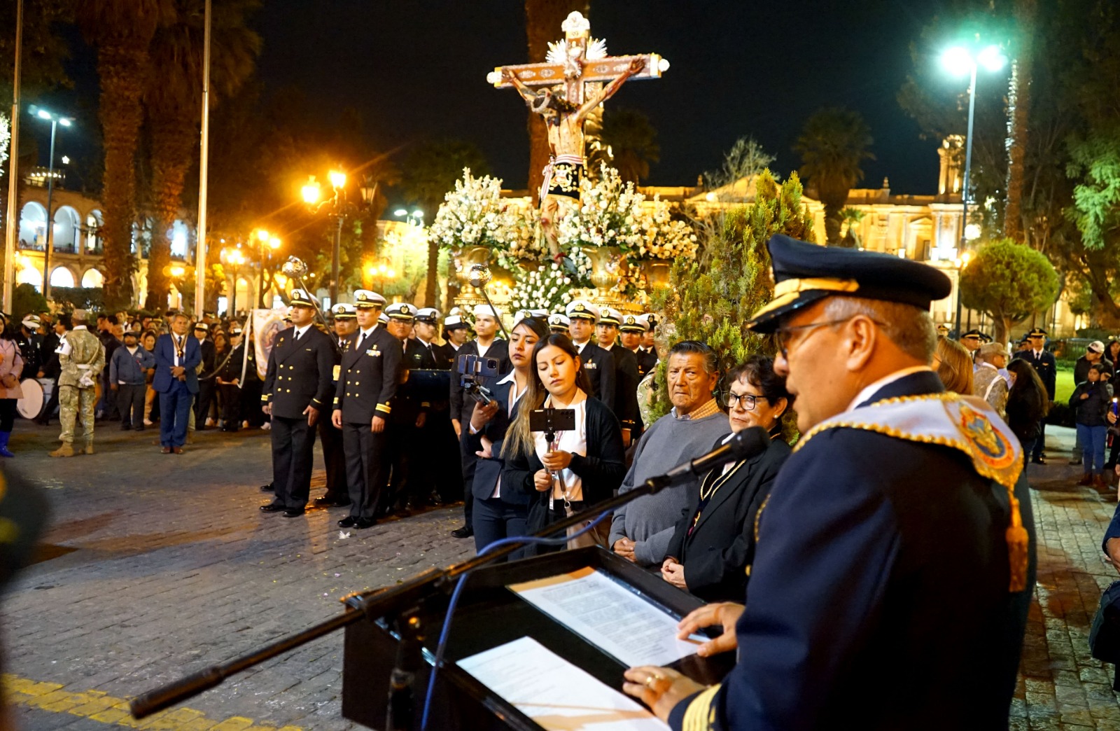 En ceremonia llevada a cabo por Semana Santa, en homenaje al Cristo de la Caridad, Patrono Jurado de Arequipa y de las Fuerzas Armadas y Policía, el Ala Aérea N.°3 en acto solemne recibió la Mayordomia 2024-2025 del Cristo de la Caridad.