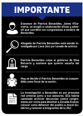 La Junta Nacional de Justicia se pronunció y calificó de falsas las declaraciones porque primero deben escuchar a Benavides. La audiencia para ver si la suspenden será hoy.