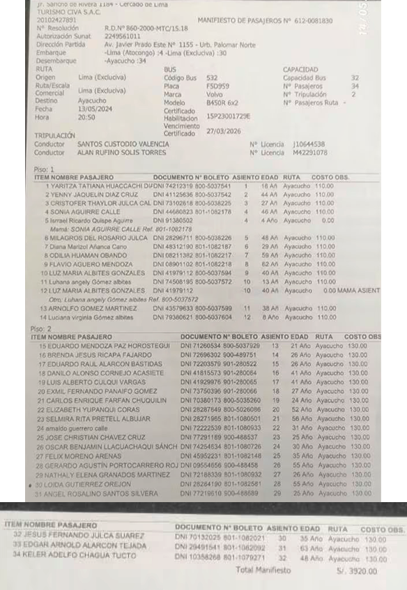 La unidad partió desde Lima Metropolitana y se dirigía hacia la provincia de Huamanga. El accidente ocurrió a la altura del puente Ñiñacha, sector del canal Cachi. El bus, que llevaba la placa F5D-959, se volcó y el techo quedó sobre el pavimento, totalmente destrozado.