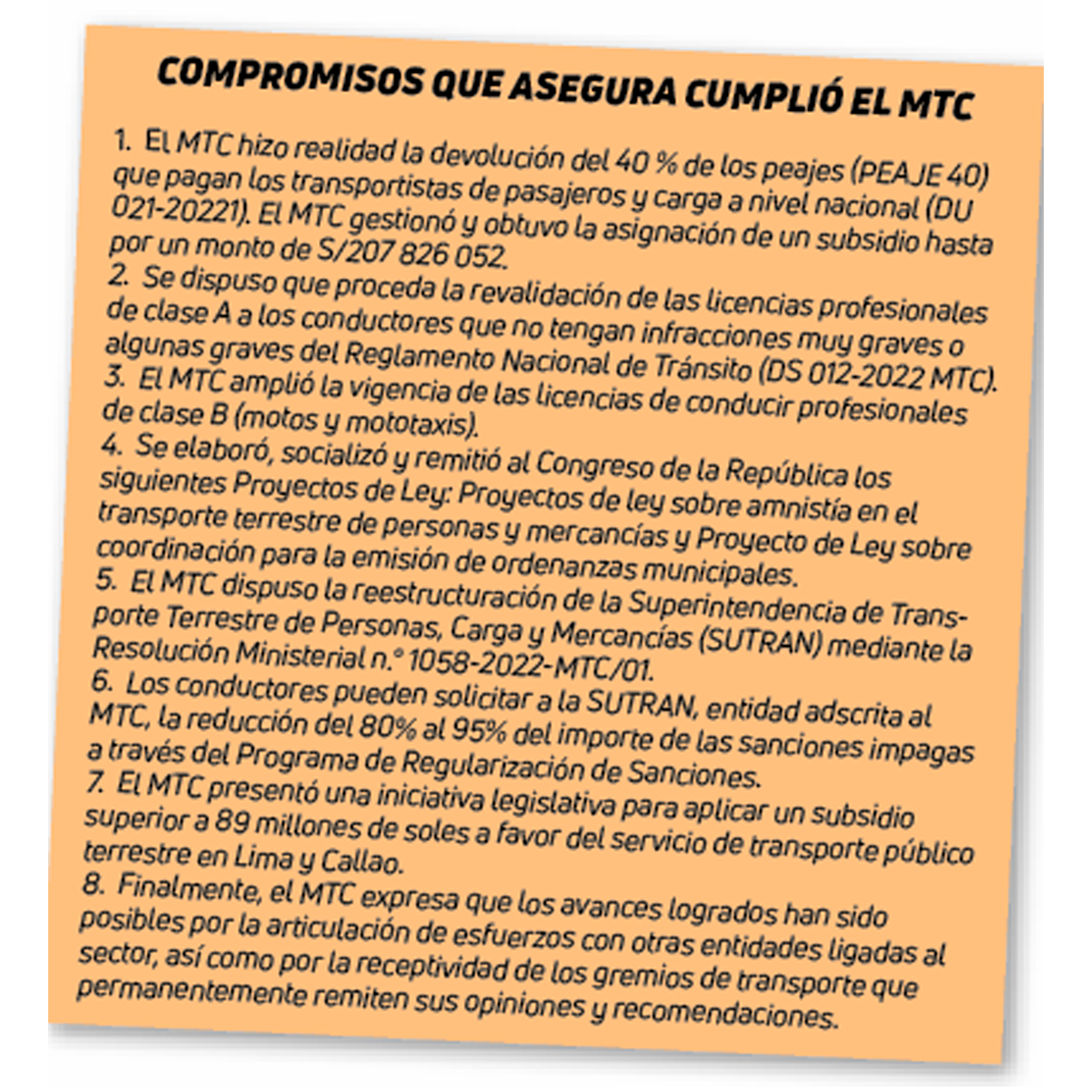 Por otro lado, el secretario del Sindicato de Choferes Camioneros, Teófilo Sánchez, dijo que un número considerable de puntos no fueron cubiertos por el Ministerio de Transportes y Comunicaciones.
