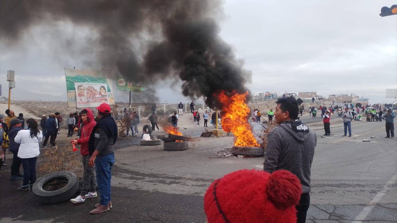 El panorama es igual en La Joya, donde cerraron la carretera Sur completamente, al igual que la entrada a Majes y El Pedregal.