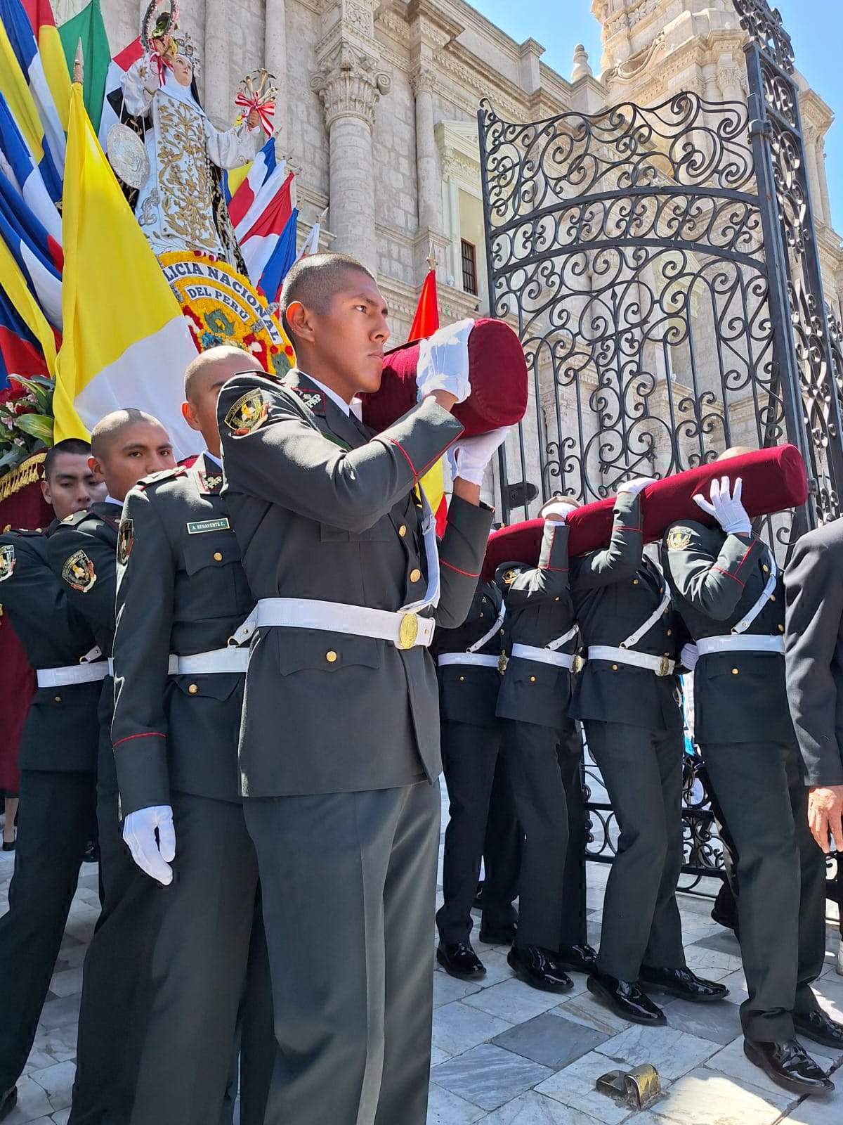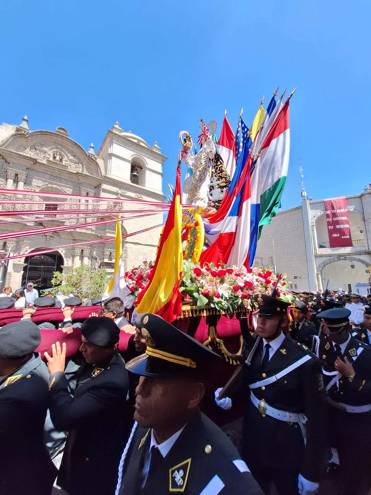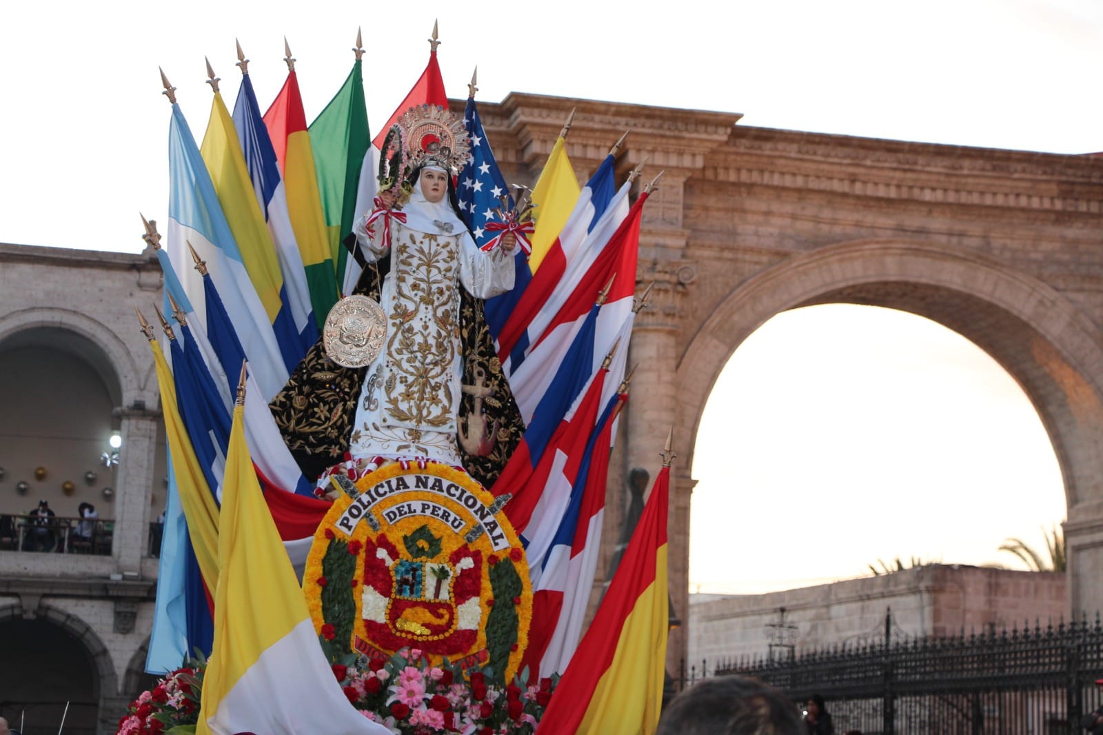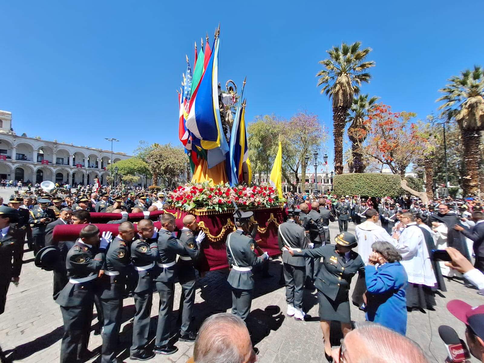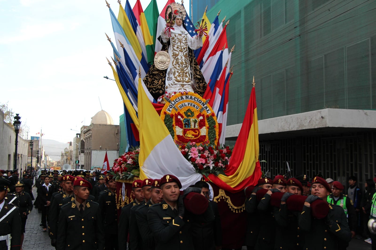 PROCESIÓN. El jefe de la IX Macro Región Policial, General PNP Colin Sim Galván, refirió que Santa Rosa de Lima siempre será una guía para los efectivos policiales. La autoridad Policial participó de las 9:30 horas de una misa litúrgica acompañando la sagrada imagen y en compañía del gobernador de Arequipa Rohel Sánchez Sánchez, y el alcalde de José Luis Bustamante y Rivero, Fredy Zegarra Black, entre otros funcionarios públicos.