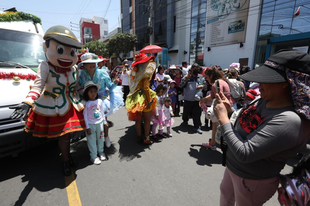 En su recorrido arrancaron sonrisas a grandes y pequeños. Los tres viajeros, acompañados de un resguardo policial, visitaron la comisaría de Mariano Melgar y Miraflores desde las nueve de mañana. Allí las personas los recibieron con júbilo, desde el 2005 es una actividad que se volvió tradición.