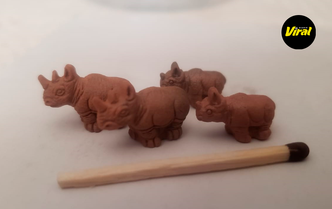 Este joven elabora sus delicadas obras en base a dos insumos: la piedra de Huamanga y el ladrillo. Entre las principales muestras tenemos a familias de rinocerontes cuyo tamaño no supera 1 centímetro de altura. De igual forma, nos presenta elefantes con la trompa hacia arriba como amuletos para la buena suerte.