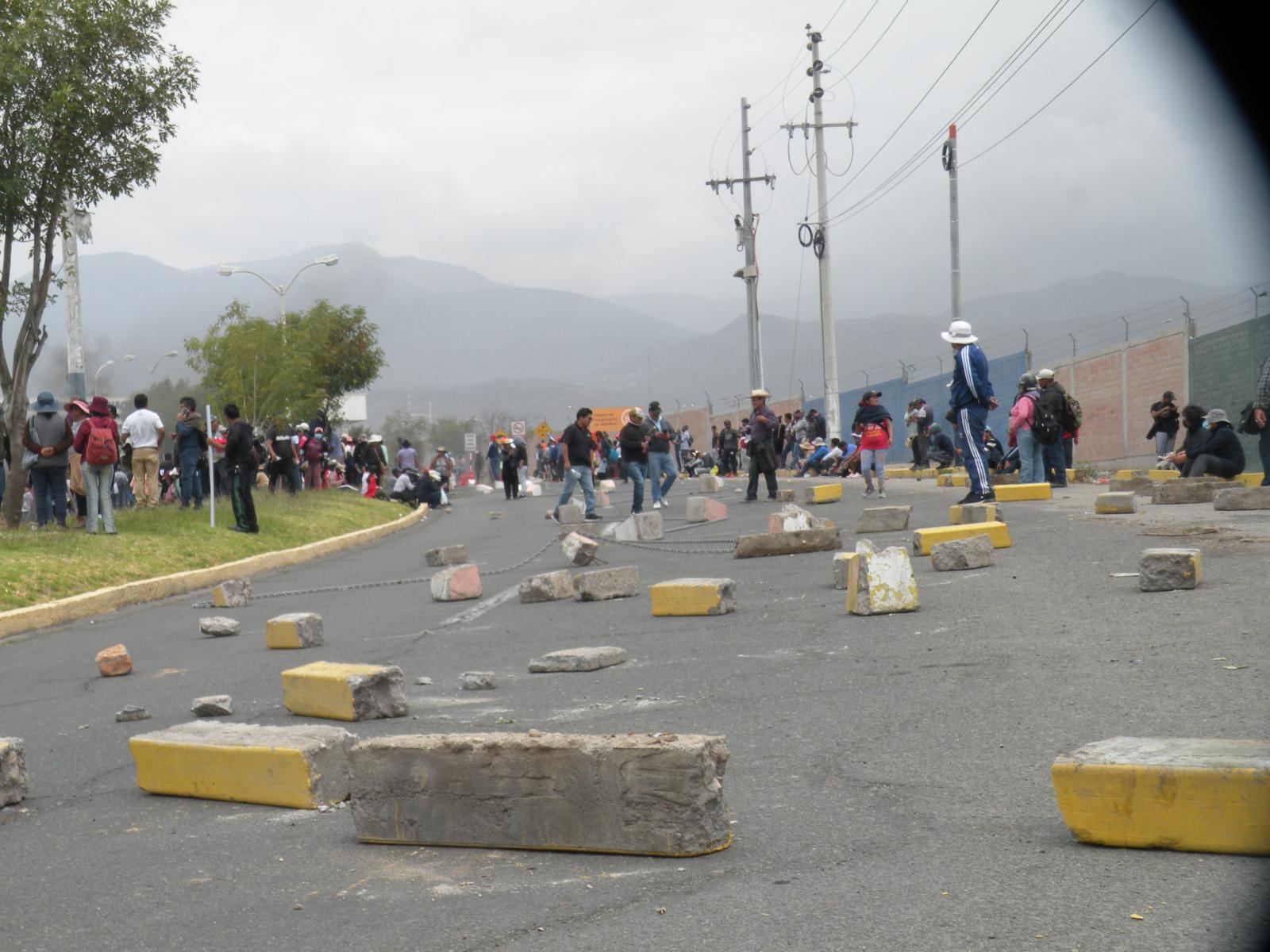 Los enfrentamientos en esta zona se volvieron vandálicos, puesto que quemaron una caseta de control, lo que generó el cierre inmediato del aeropuerto internacional porque pusieron en riesgo la vida de los pasajeros.