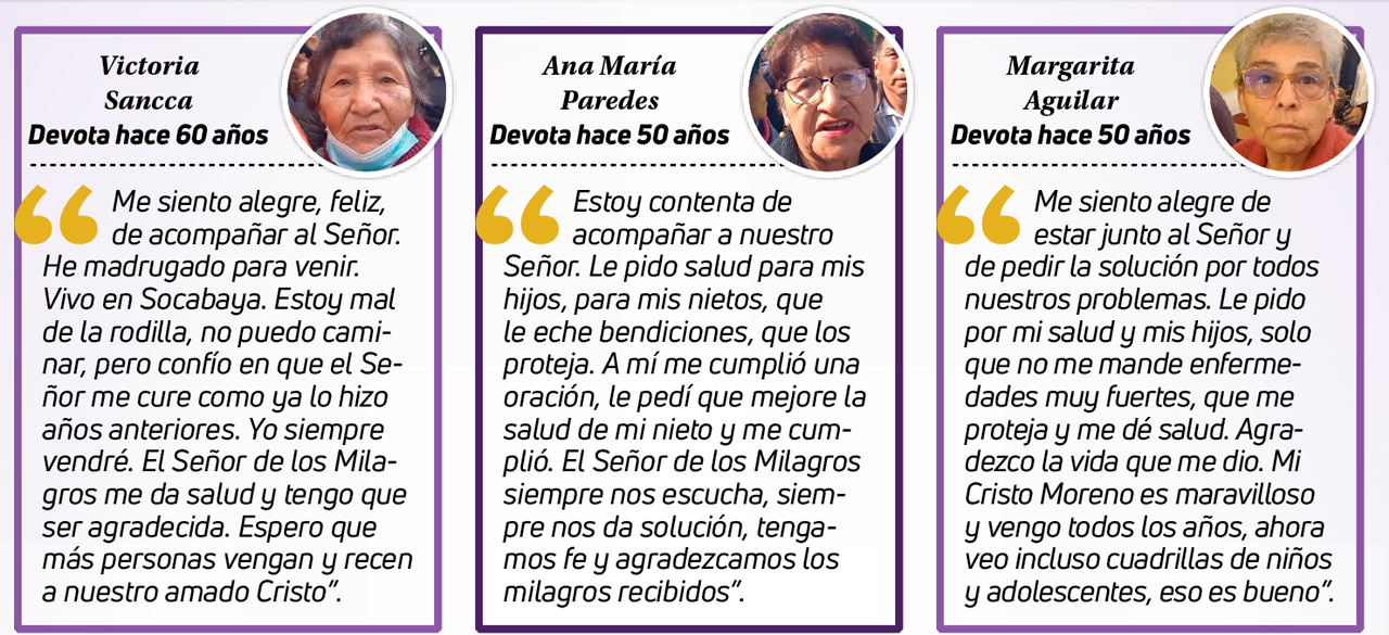 Esta devoción hacia el Señor de los Milagros tiene un largo precedente, en Arequipa nació en 1950 en el templo de Santa Marta, ubicado en el Cercado de la Ciudad Blanca. En aquella fecha un grupo de mujeres veneraban un cuadro del Cristo Morado.